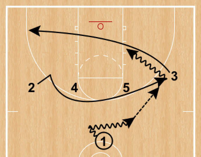 Classic "Iverson cut". First, the alignment (1-4) limits "weakside help." It also informs the defense about the intent of clearing space in the lane.