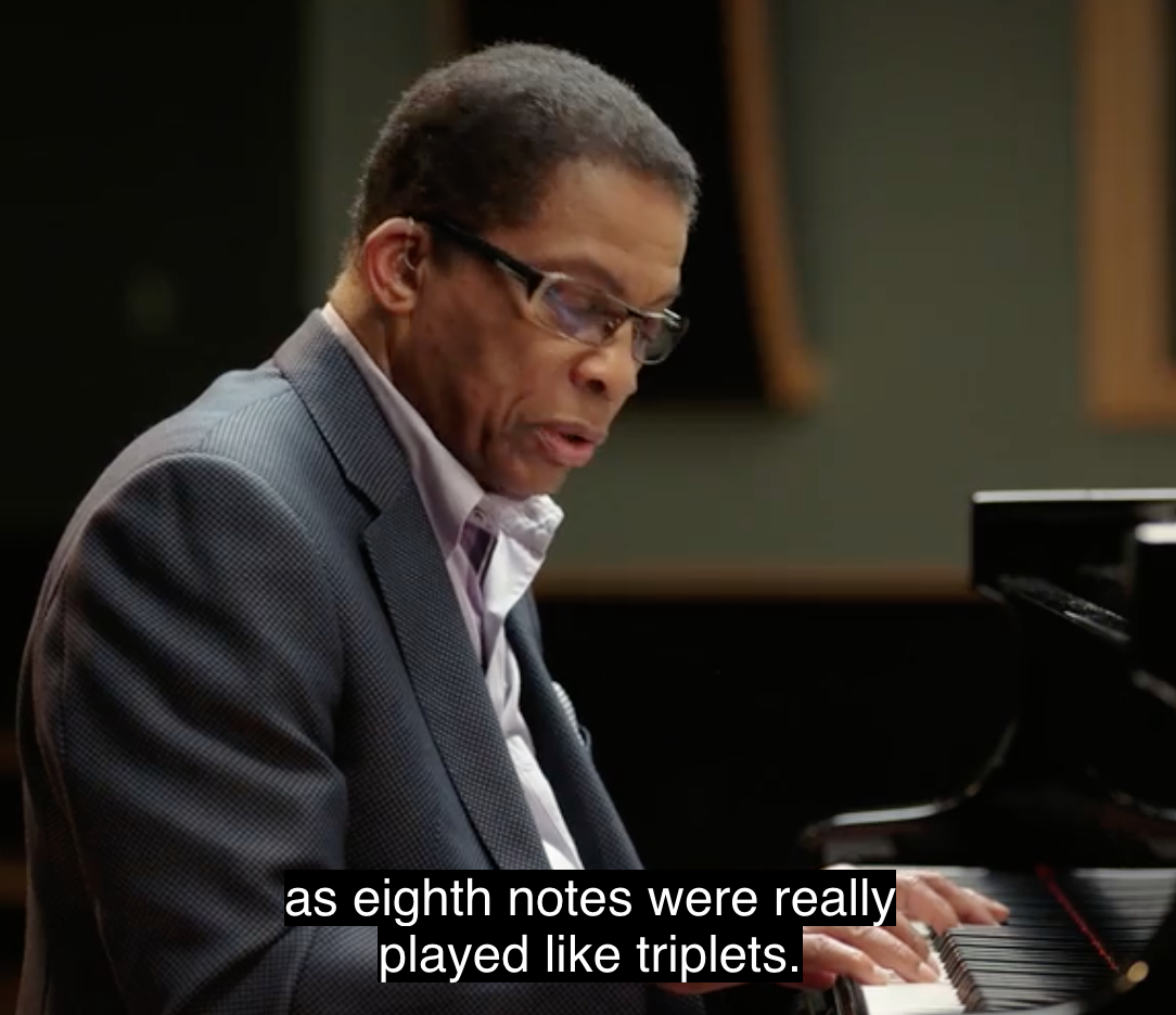 Great shooters score toward the back of the goal. Note this overhead view of Herbie Hancock's hands. He plays most of the keys at the back end of the key, not just the flats and the sharps.